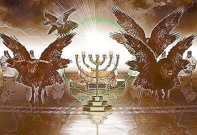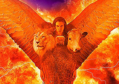 Der allmächtige Gott Jahweh hat vier Haupteigenschaften, welche durch die vier Wesen in der Offenbarung 4: 6,7 dargestellt werden: „Und das erste lebendige Wesen war gleich einem Löwen“