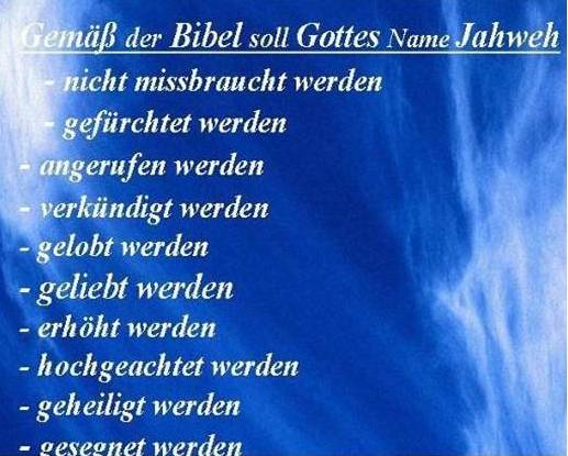 Allein die Tatsache, dass der allmächtige Gott Jahweh mit seinem eigenen Finger in den Zehn Geboten achtmal seinen eigenen Namen geschrieben hat, zeigt wie wichtig sein persönlicher Name ist!!!